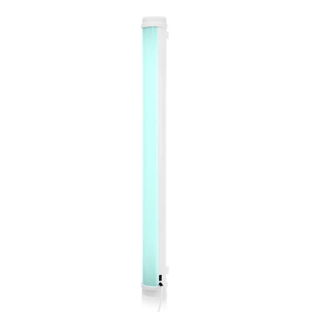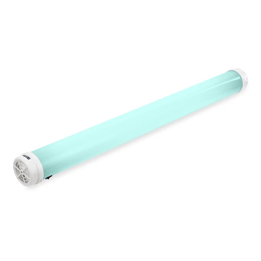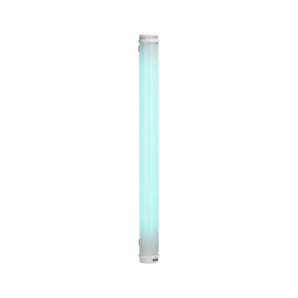 В рециркуляторе установлена бактерицидная лампа мощностью 30 Вт. Корпус выполнен в эффектном небесно-голубом цвете, который удачно подойдёт для установки дома, в детском учреждении, в офисе подходящим интерьером. Высота корпуса составляет 1070 см, поэтому наиболее подходящее его расположение на полу. Для профилактики прибор можно включать на 1-2 часа в день, а при заболевании людей или большой проходимости можно оставлять включенным на целый день.