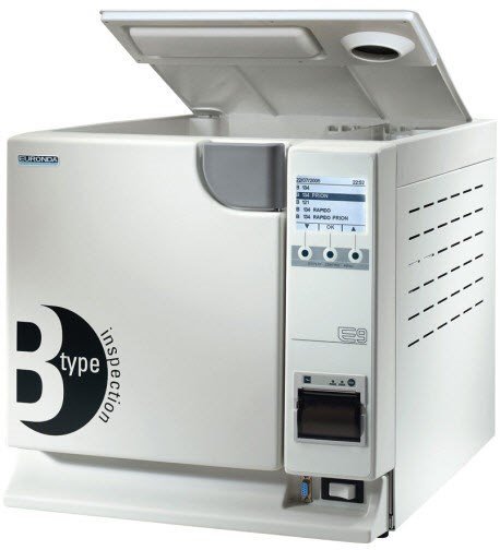 E9 автоклав B - класса с предварительным пульсирующим вакуумом и двухступенчатой вакуумной сушкой. Принцип действия: откачивание горячего воздуха посредством мощного вакуумного насоса до отрицательного значения: -0,85 bar, и как следствие полное высушивание инструмента. Вакуумная сушка - это щадящая сушка, которая оптимально подходит для любых инструментов и материалов. Время сушки: 15 минут.