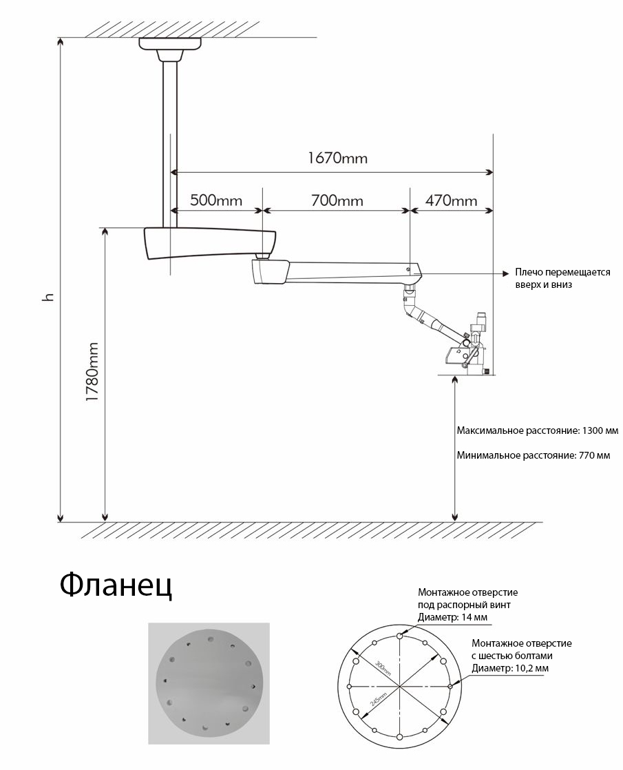 - Кронштейн: Двойной кронштейн с регулировкой угла наклона.