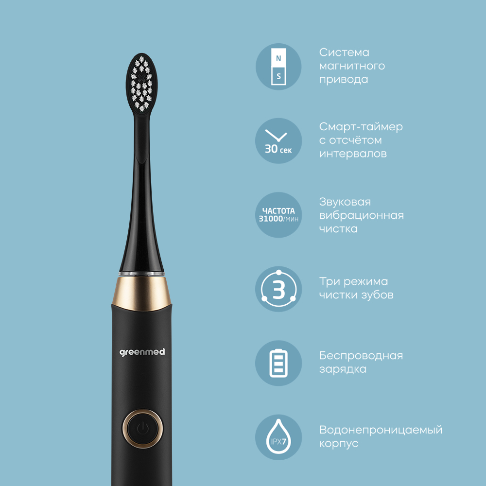 - Умный таймер с напоминанием позволяет проводить чистку зубов наиболее эффективным способом