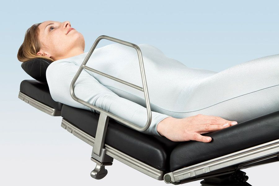 Это боковое ограждение для хирургического стола предотвращает падение пациента, например, при его транспортировке.