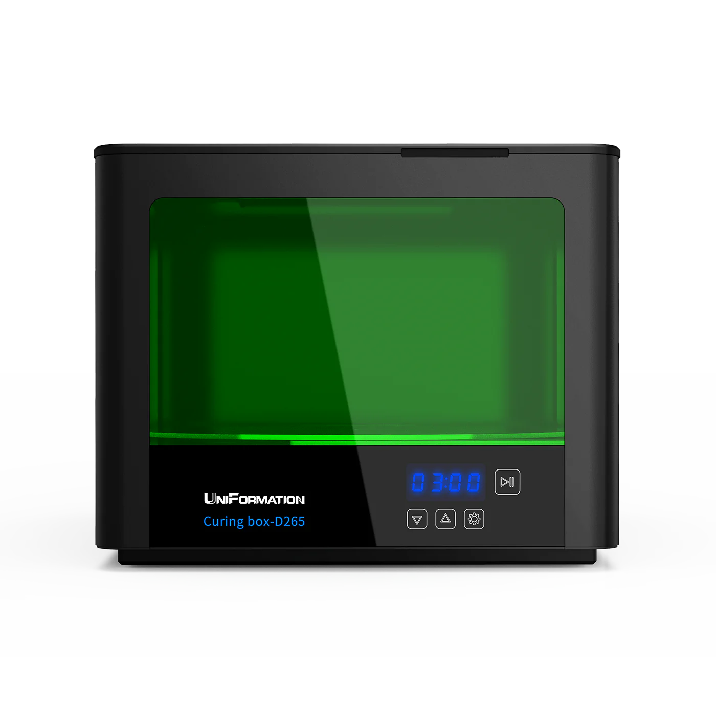 Устройство УФ-засветки от UniFormation обладает большой рабочей областью (260 х 140 мм), которая быстро и качественно полимеризует как крупногабаритные модели, так и партии. Это делает устройство идеальным выбором для профессионального использования, включая лабораторные и мелкосерийные производственные цели.Конструкция источника излучения была тщательно разработана таким образом, чтобы исключить возможность появления слепых зон. Всего в станции расположены 16 УФ-ламп и 4 светодиодные ленты, которые равномерно распределены по всем сторонам и работают с автоматически вращающимся поворотным столом. Этот распределённый источник УФ-излучения с длиной волны 405 нм обеспечивает равномерное отверждение даже самых сложных геометрических моделей. Такая конструкция также помогает предотвратить дефекты, вызванные неравномерным отверждением смолы.