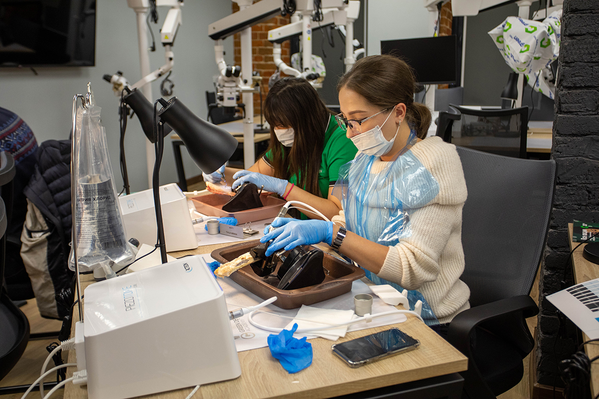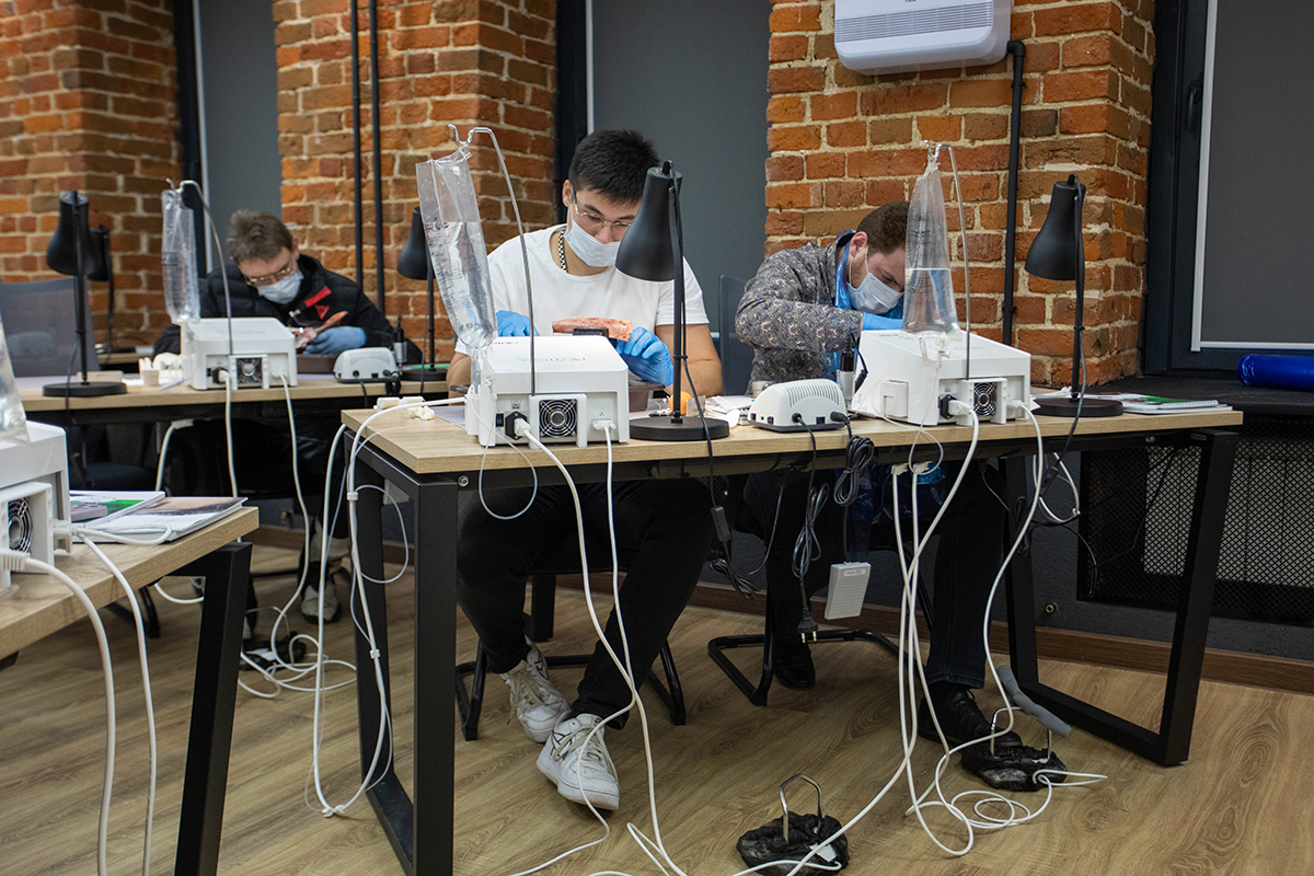 А на практической части участники практиковались на специальных моделях. Они научились проводить синуслифтинг, забор блока, остеотомию, расщепление и закрытый синус-лифтинг.