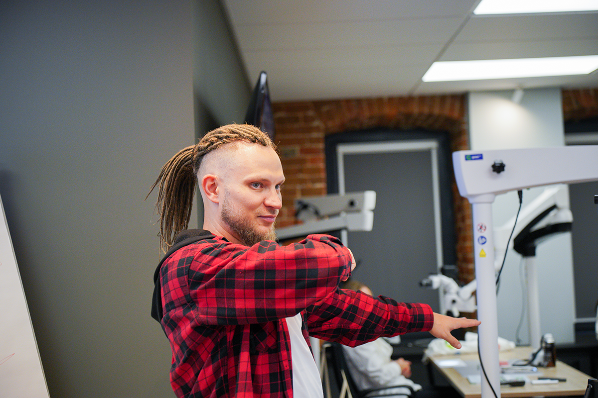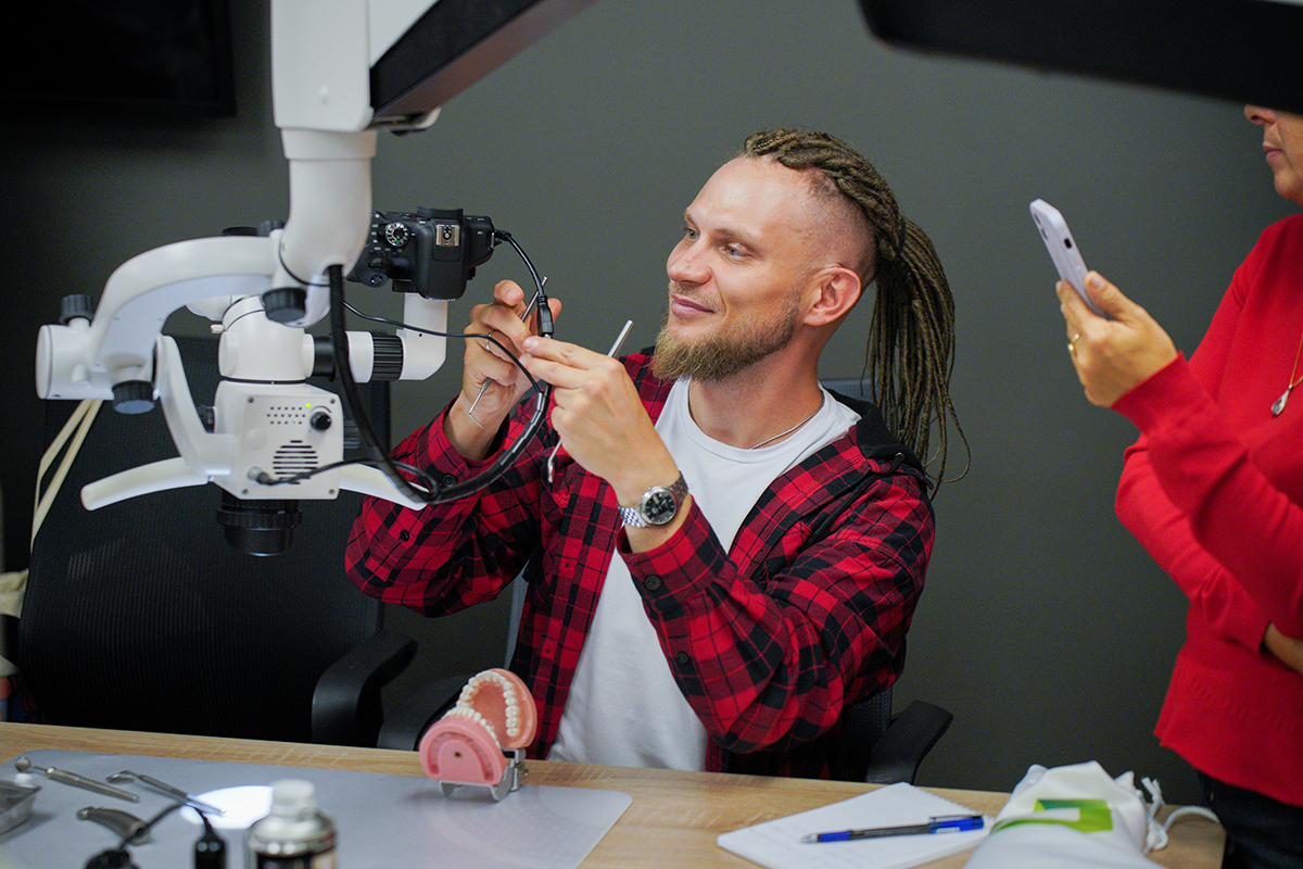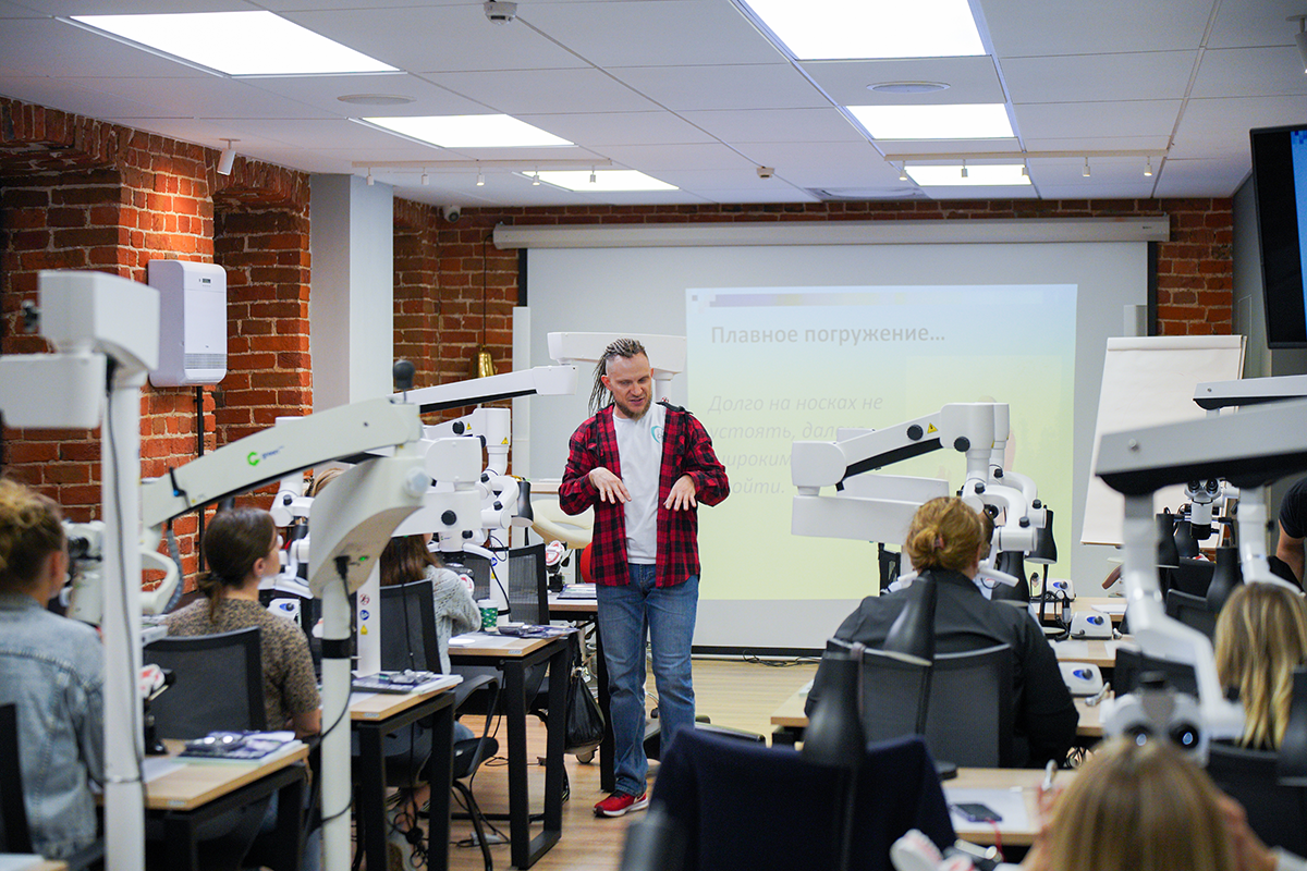 На своём курсе в учебном центре Green Dent Academy он учит стоматологов принципам эргономичного приёма и делится секретами о том, как работать с микроскопом, получая удовольствие от комфортной практики.