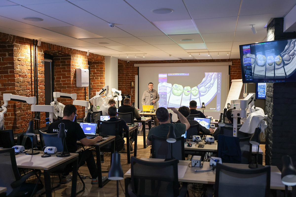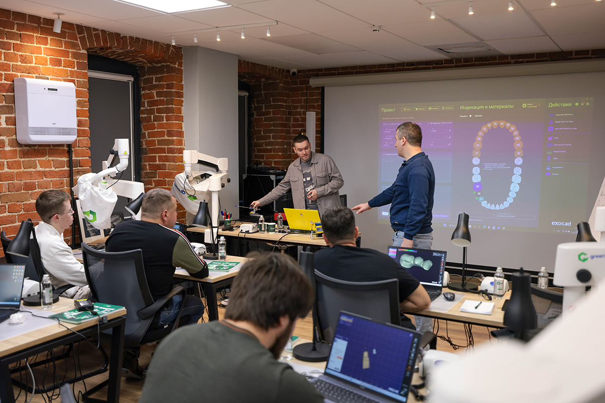 Его участники освоили базовые знания по моделированию в Exocad и отработали их на практике, создав одиночную анатомическую коронку в режиме Помощника, мостовидный протез на винтовой фиксации с применением разных типов редуцирования в режиме Expert, Wax-up (digital waxup) и построив модель для 3D-печати с ваксапом.